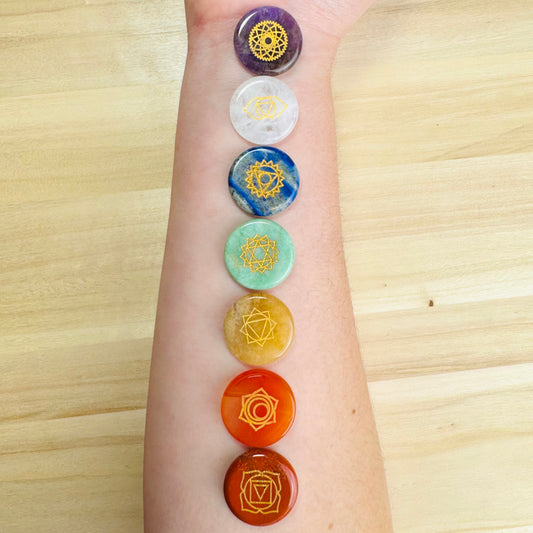 Kit 7 Piedras Chakras Planas Grabadas || Reiki - Equilibrio Energético